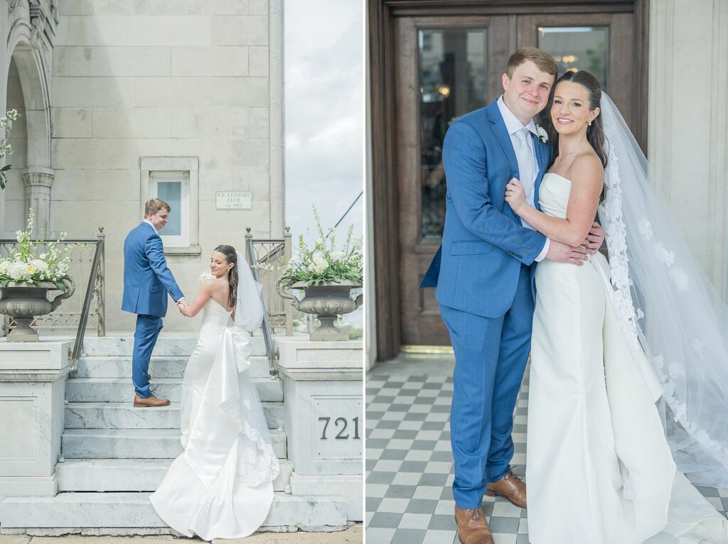 I’m excited to feature another one of my favorite Mississippi wedding venues today! The BB Club in Vicksburg Mississippi has become a favorite venue of mine for several reasons! Located in historic downtown Vicksburg, it’s spread over two floors, creating so much space for weddings. The first floor includes a library, parlor, billiards room, & dining room. The Grand Ballroom on the second floor can accommodate about 400 standing guests!